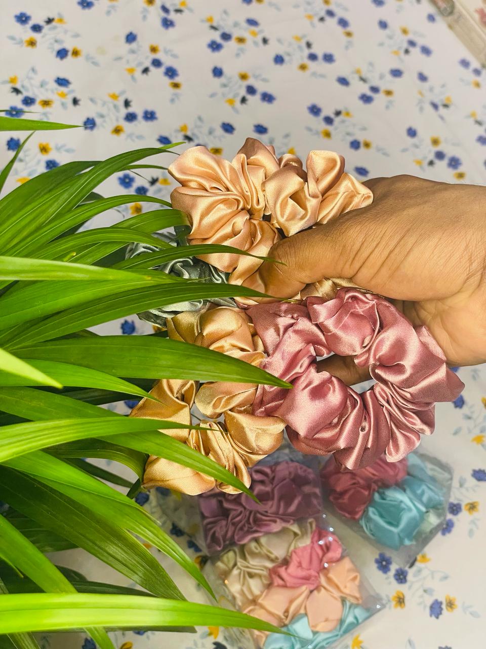 Multicolor Pure Silk Scrunchies Hair Tie Elastic Large Hair Bands Set Hair Band (Multicolor)