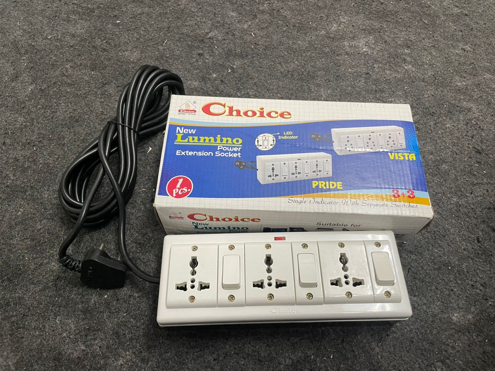 ZUED | 3+3| 6 Amp /10 Amp 3 Socket 3 Switch with LED Indicator Power Extension Board | Power Strip | Extension Cord